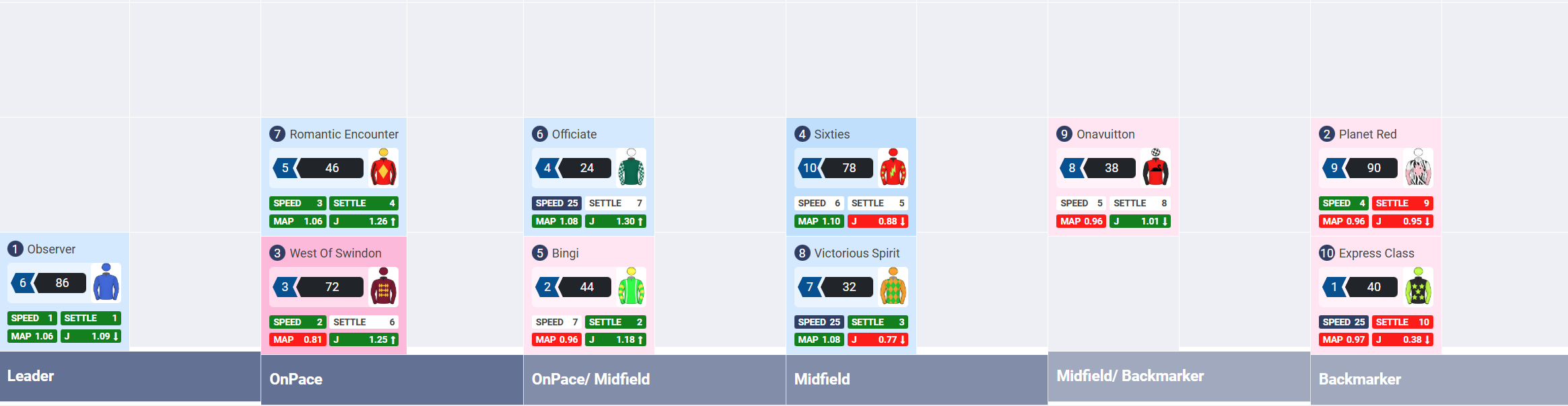 | Prime Rating | Expected rating figure for the upcoming race based on historical performances |