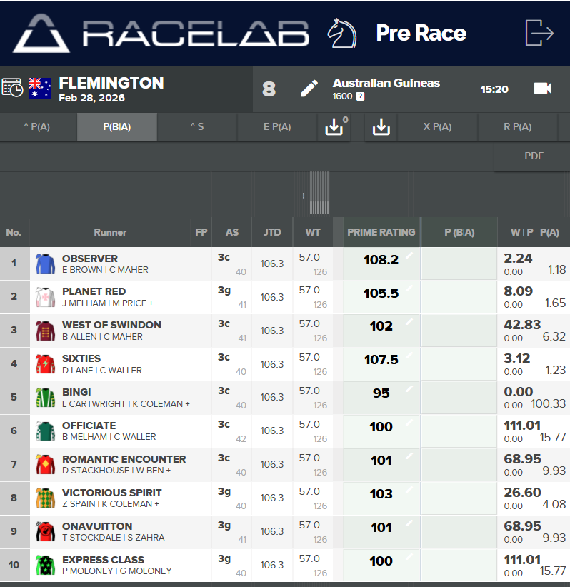 Racelab’s Matt Collum has taken a forensic look at the Australian Guineas using their ratings system to assist working out who’s best credentialed to take out this year’s race.