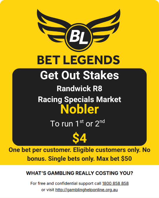 Beirne and Bet Legends are keen to take Nobler on at the $3.60. In fact, he’s so keen to take Nobler on that you can get $4 about him running first or second!