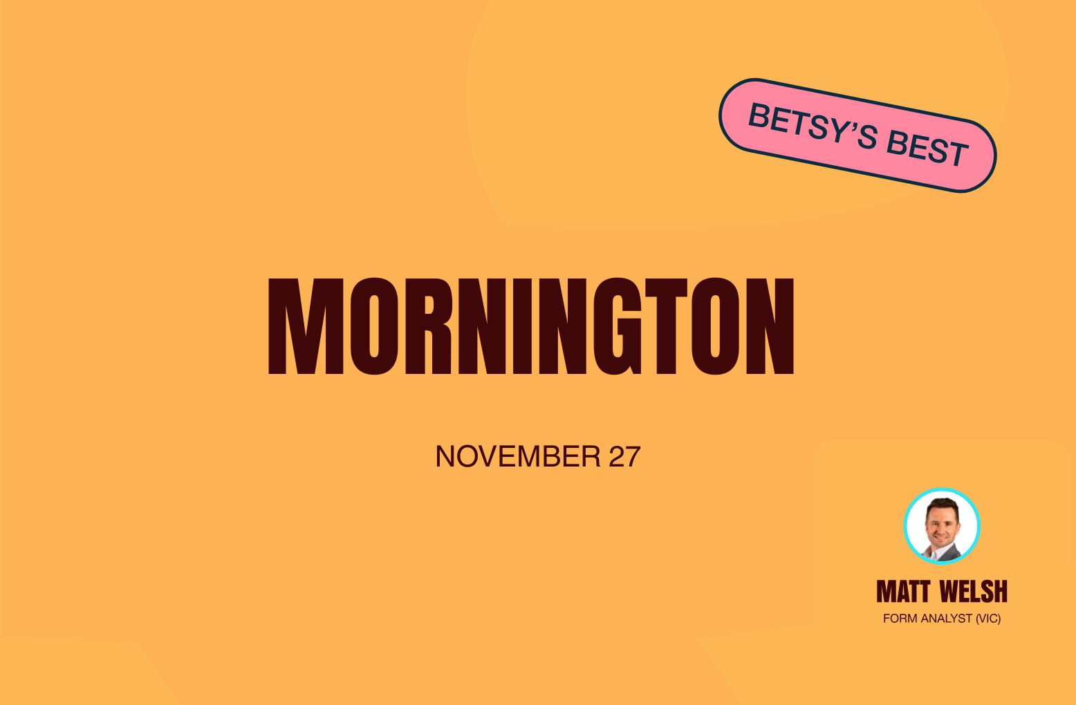 Matt Welsh is the founder of Betsy and one of Australia’s most respected form analysts. A former executive at Racing.com and Racing Victoria, Matt has built a reputation for market-leading analysis, clear communication, and a deep understanding of both racing and wagering. With Betsy, he has assembled a team of trusted, high-quality form analysts dedicated to delivering expert analysis that will arm Betsy punters for a winning day at the races.