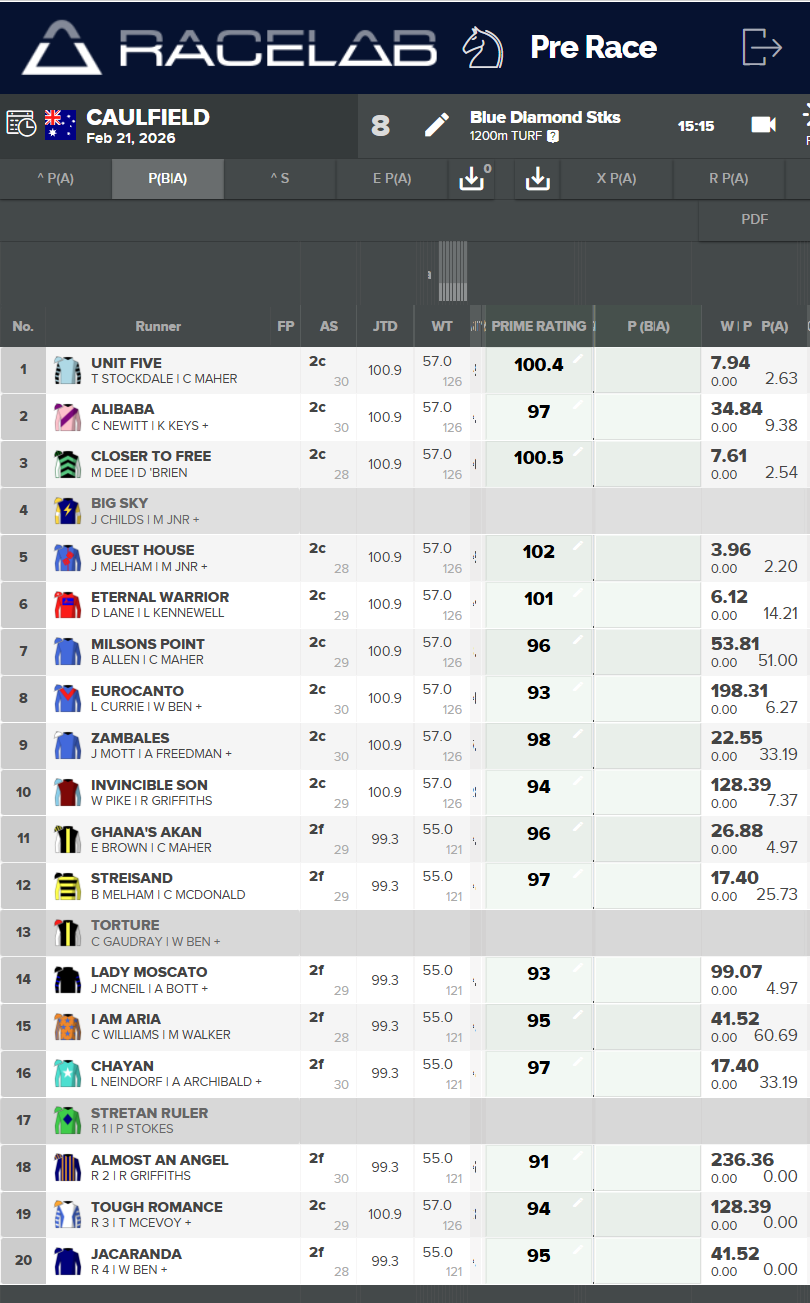 The Racelab Prime Ratings for each horse can be seen in the screenshot below.
