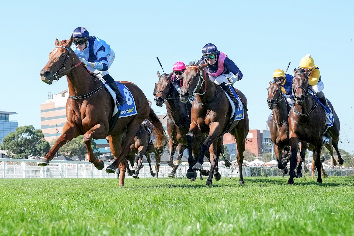 From York to Caulfield 🤝 Mukhtalif makes an impressive Australian debut, bounding clear under @bennallen44.