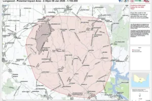Emergency services confirmed on Thursday night that at the town of Longwood, more than 400 firefighters are tackling a bushfire that has so far burnt through 27,000 hectares and prompted many ‘Leave Now’ emergency warnings. Parts of the Hume Freeway have been closed.
