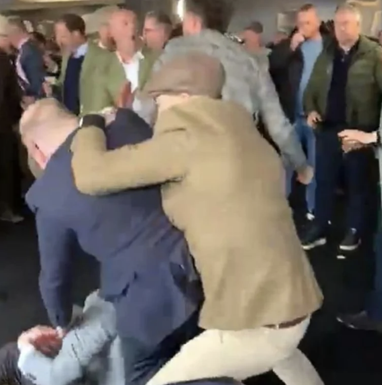 A wild brawl has been captured at the famous Cheltenham festival overnight.