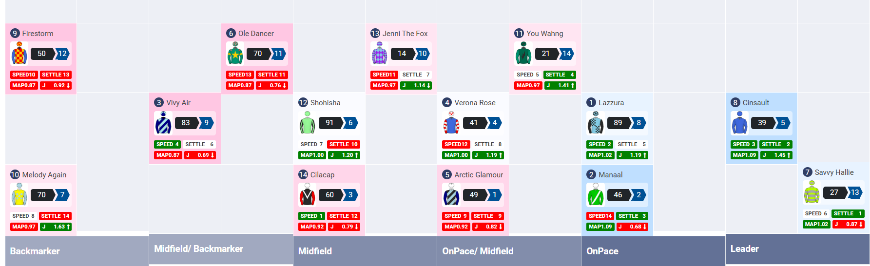 Based off a range of data, speed map and recent form, Racelab has come up with its own 100% market, which is compared to the current market in the table below. Value exists where the Racelab price is lower than the current price.