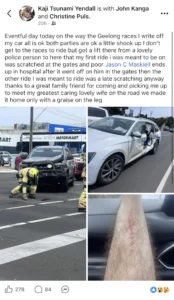 “I was heading to the Geelong races, near the Fyans Street and Moorabool Road intersection,” Yendall told broadcaster racing.com on Sunday.
