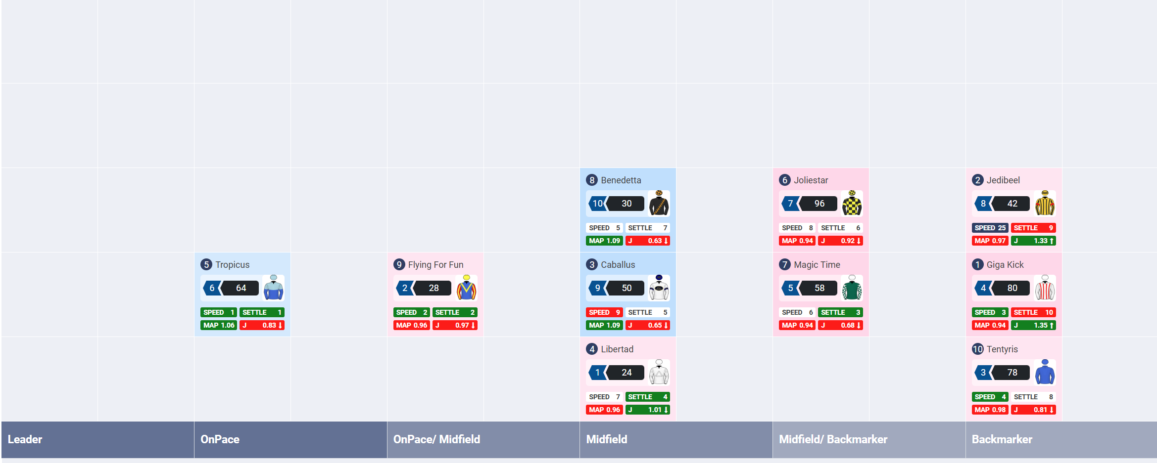 | Job To Do (JTD) | The minimum rating required for each runner to win the race using a combination of metrics: Benchmark, Weight Carried, Mean Weight and Distance. |