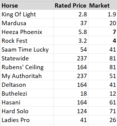 The Racelab Prime Ratings for each horse can be seen in the screenshot below.