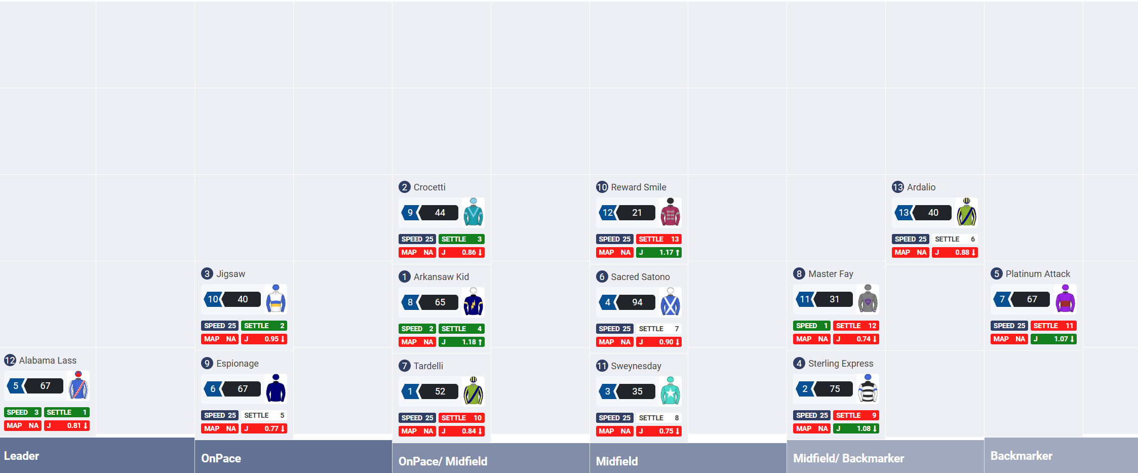 Field of thirteen runners in the Sistema Railway Stakes. Tempo appears solid with Alabama Lass leading and Jigsaw working across from the wide draw. Alabama Lass generally runs her best races fresh and she looked sharp in a recent trial. Her win in the Kings Plate here in March was dominant and her best ratings have come on softer ground. I’m happy to be with her at the price. Jigsaw comes here with three wins on the trot however he did lead in all of those wins and may not be able to find the front here. Arkansaw Kid and Espionage can improve here with the right run.