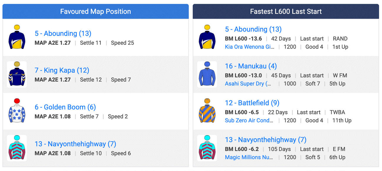 Abounding at $9 looks a brilliant bet at the price. She has the 27% map edge and ran -13.6 over the last 600m last start. She also recorded the fastest last 200m of the race.