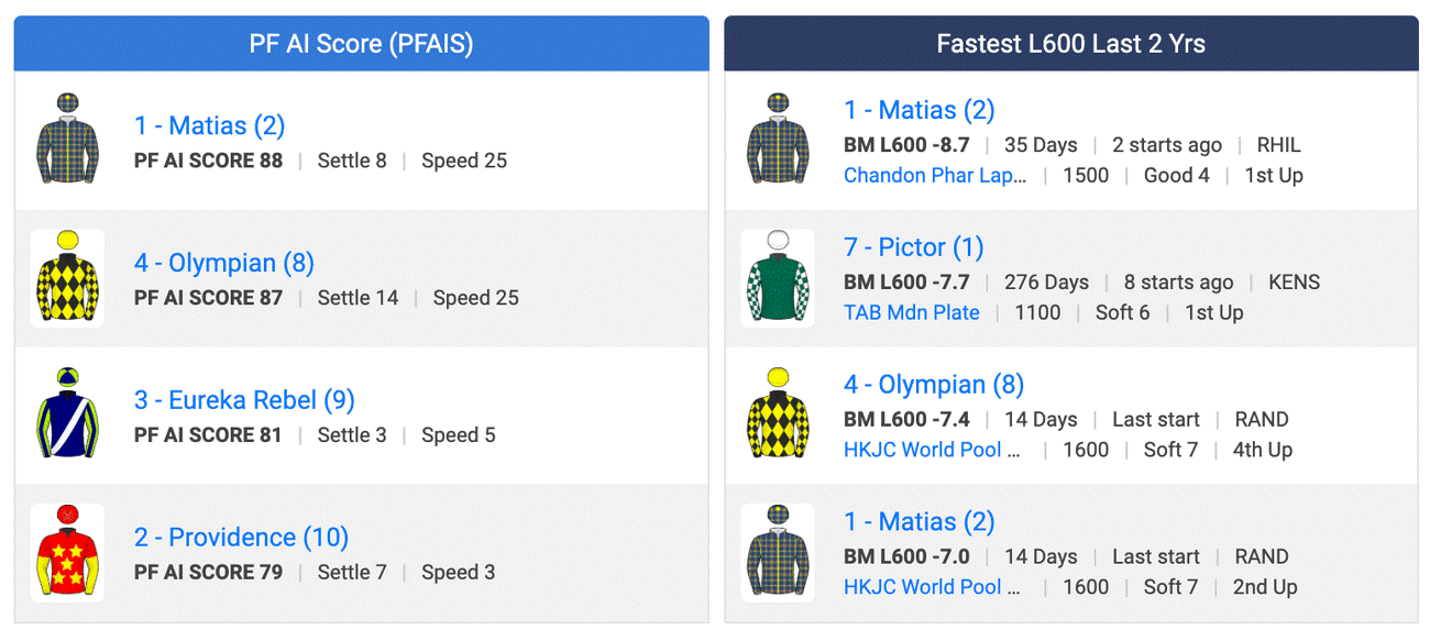 Mystic Wonder has a PF Score of 98 and ran -6.6 over the last 600m last start, nearly five lengths better than the rest of the field.