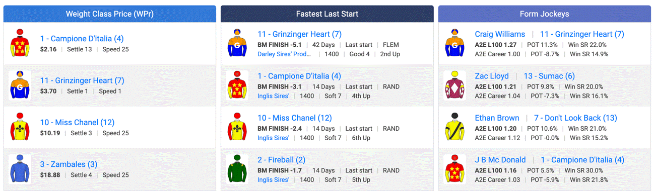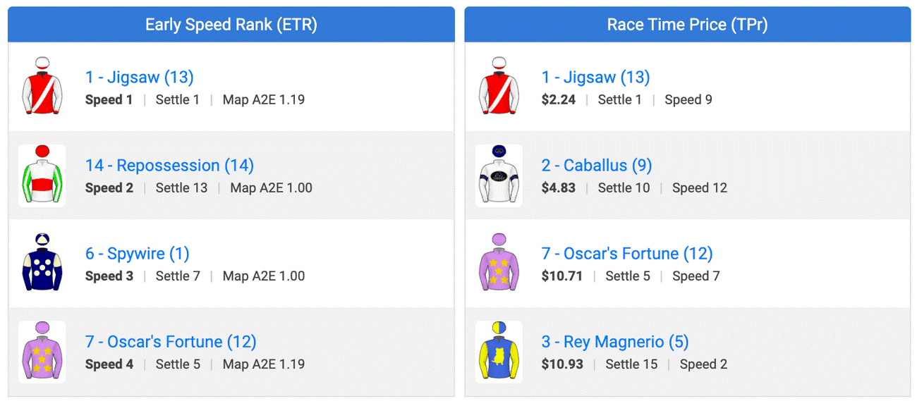 There has been early market support, he maps well and rates in the top two for Race Time Price, Late Speed, PF Score and Weight Class Price. He ran well fresh last start too.