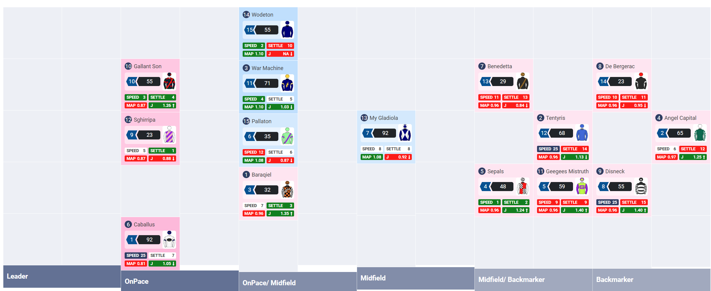 The tempo appears moderate with pace coming from Caballus, Sghirripa and Gallant Son: