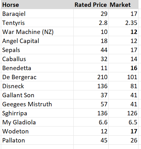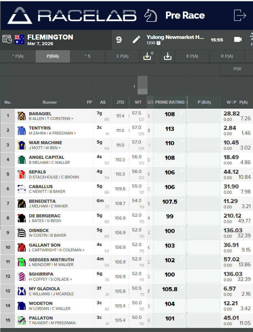 The Racelab Prime Ratings for each horse can be seen in the screenshot below: