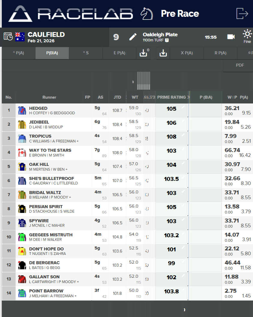 Racelab benchmark likely to be required to win this year’s edition of the Oakleigh Plate:
