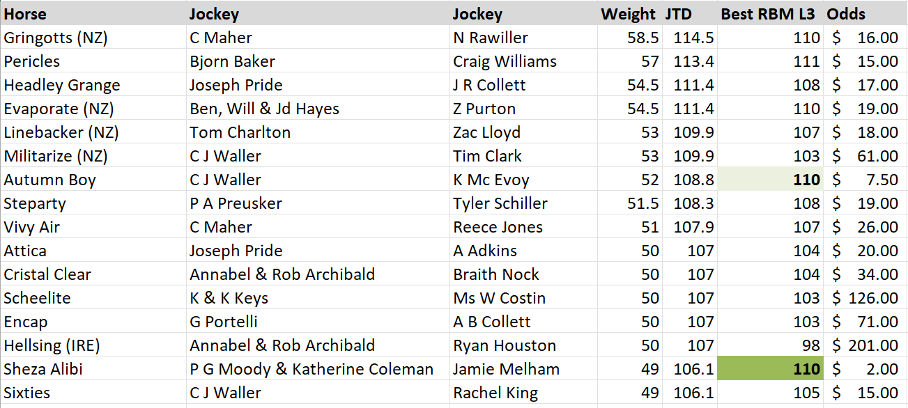 Sixteen runners in the $4m G1 Doncaster Handicap. Plenty of speed drawn wide so we should see an above average tempo. Gringotts and Pericles have a task ahead at the weights and we haven’t seen a winner carry 57kg or more since 2018. There was plenty to like about Sheza Alibi’s Randwick Guineas win, she pulled away from the field late and I’m confident that race is the A+ form. She drops to 49kg and gets Jamie Melham – hard to beat! We’ve already seen Autumn Boy win the Rosehill Guineas since, however she will have to produce a good rating again to hold out the fave. Steparty was wide throughout in the All Star Mile and kept coming late. He’s in a purple patch of form, drops 7.5kg here and maps perfectly. I’m having something on him.